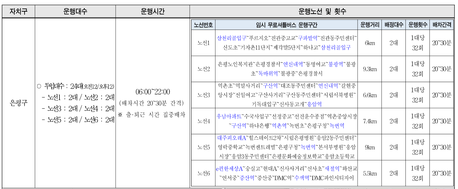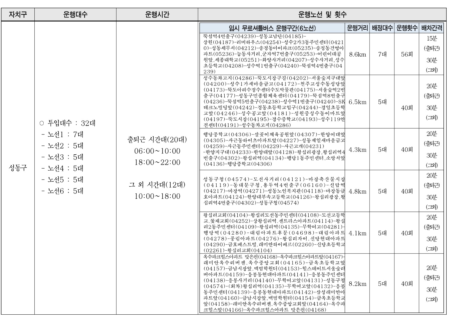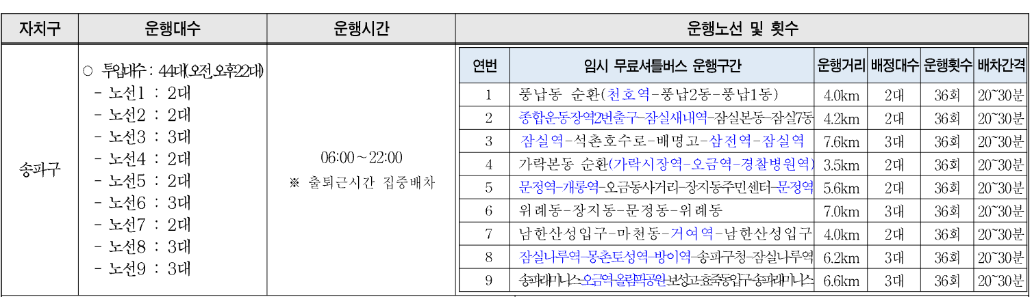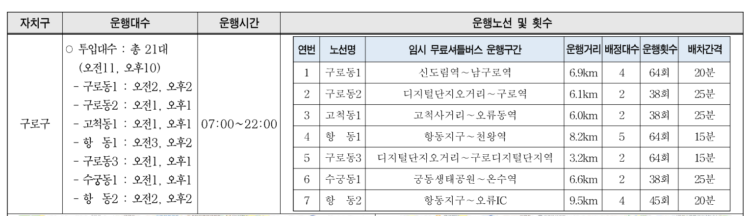6. 자치구별 무료 셔틀버스 운행 안내(26.1.13~)