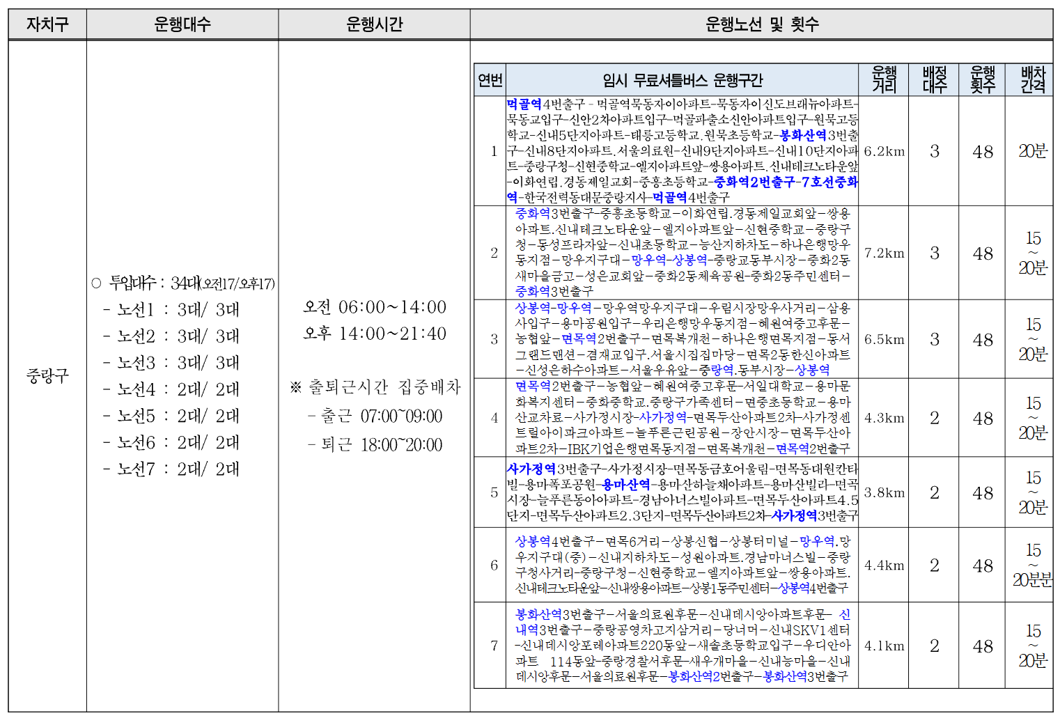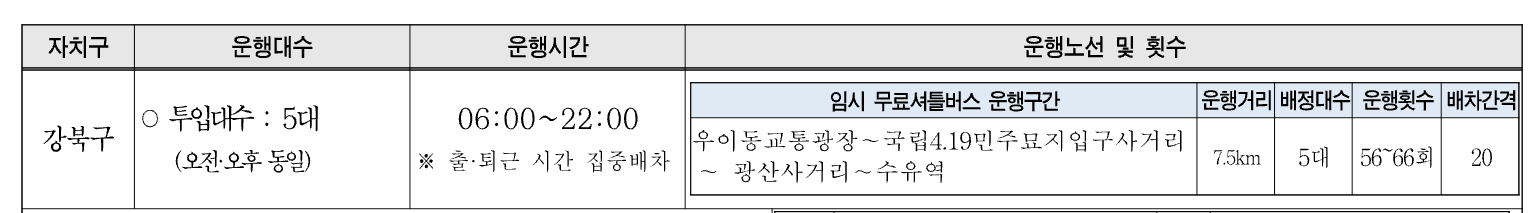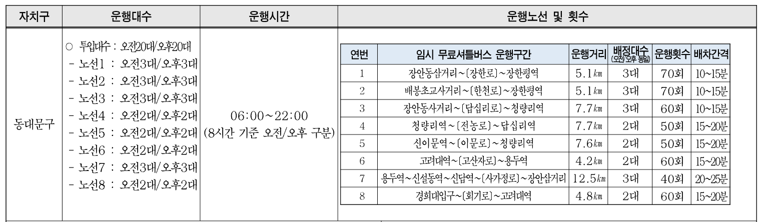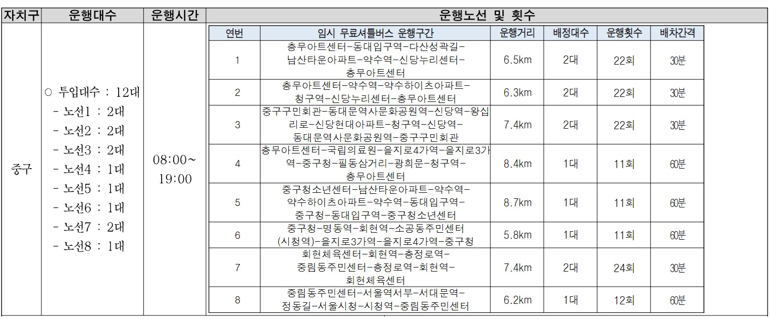 6. 자치구별 무료 셔틀버스 운행 안내(26.1.13~)