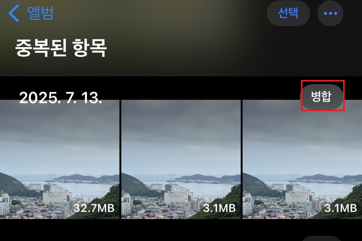 ③ '병합' 버튼을 누르면 화질이 좋은 사진만 남고 나머지는 삭제됨