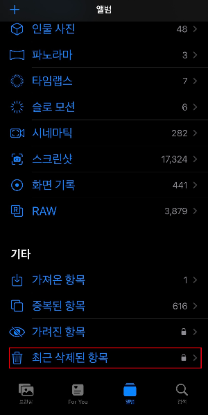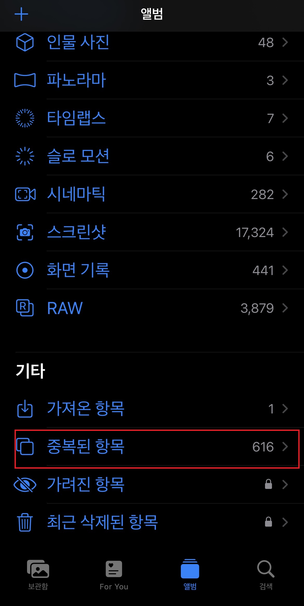 ① 사진 앱 → 기타 항목 → 중복된 항목으로 들어가기