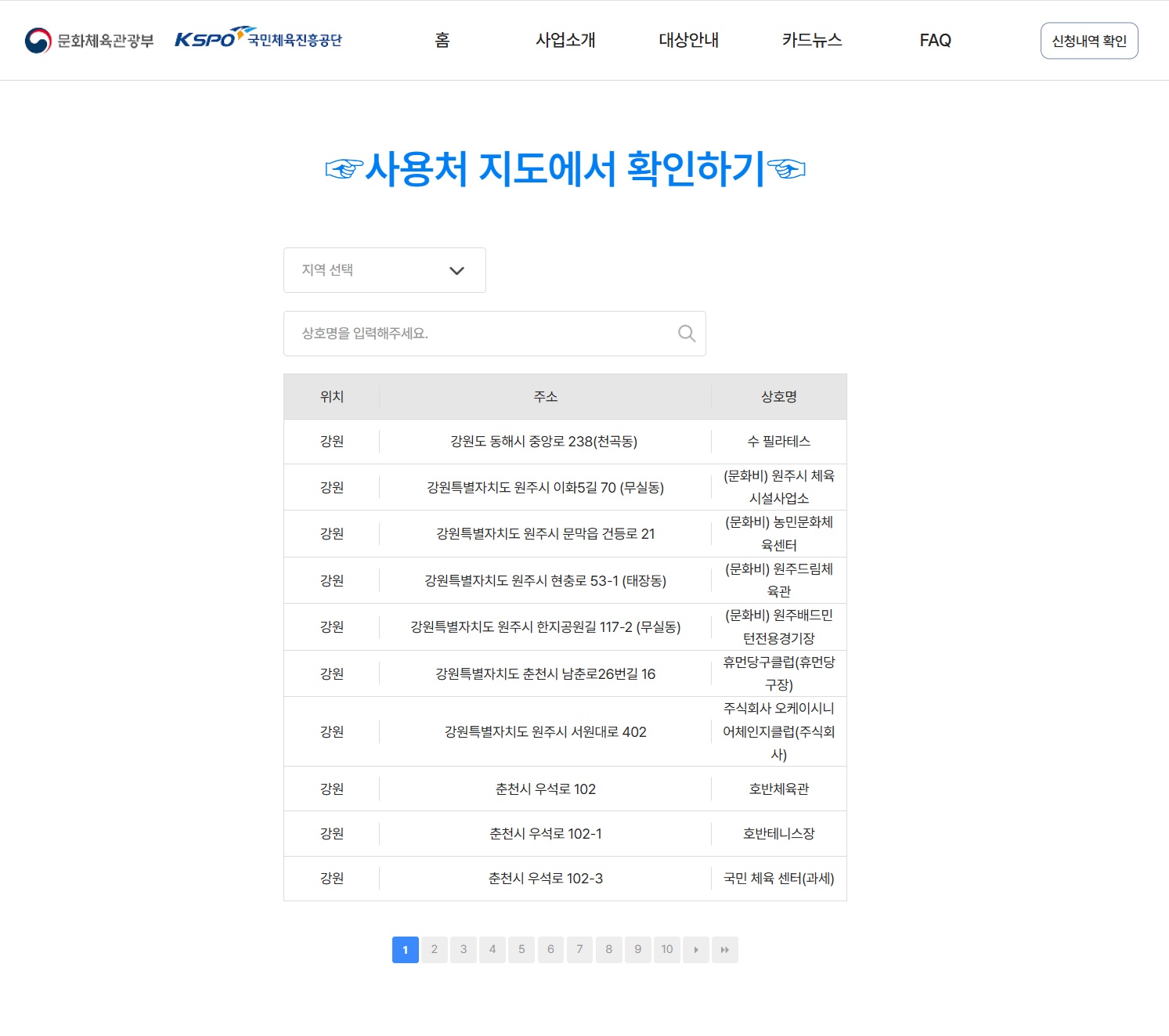 · 어르신 스포츠 상품권 누리집 → 사용처 리스트 메뉴에서 확인
