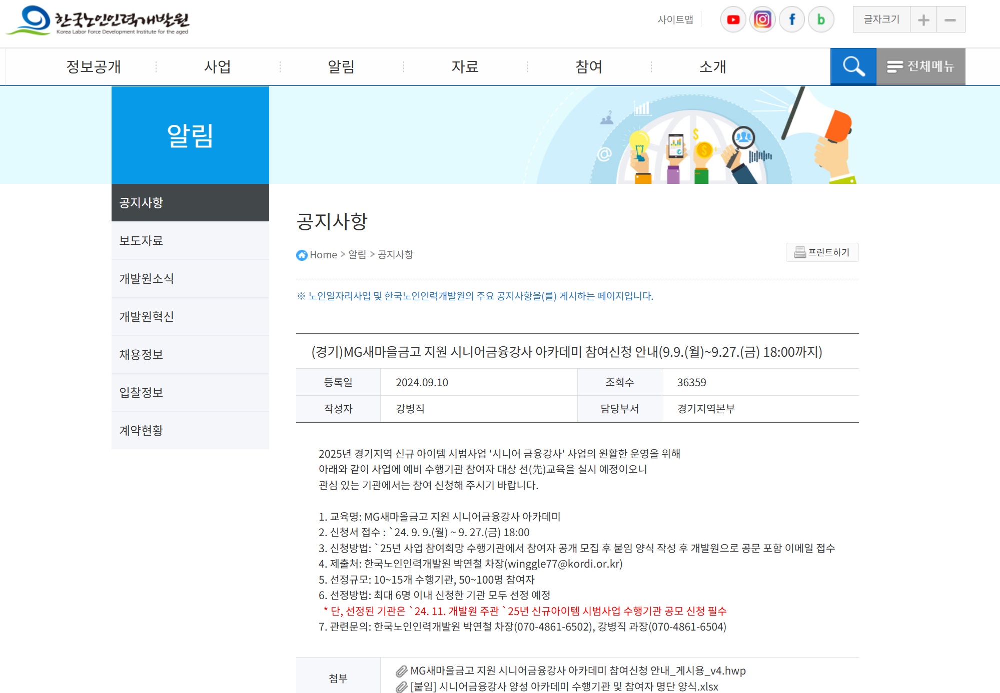 2. 주관 : 한국노인인력개발원, 전국퇴직금융인협회