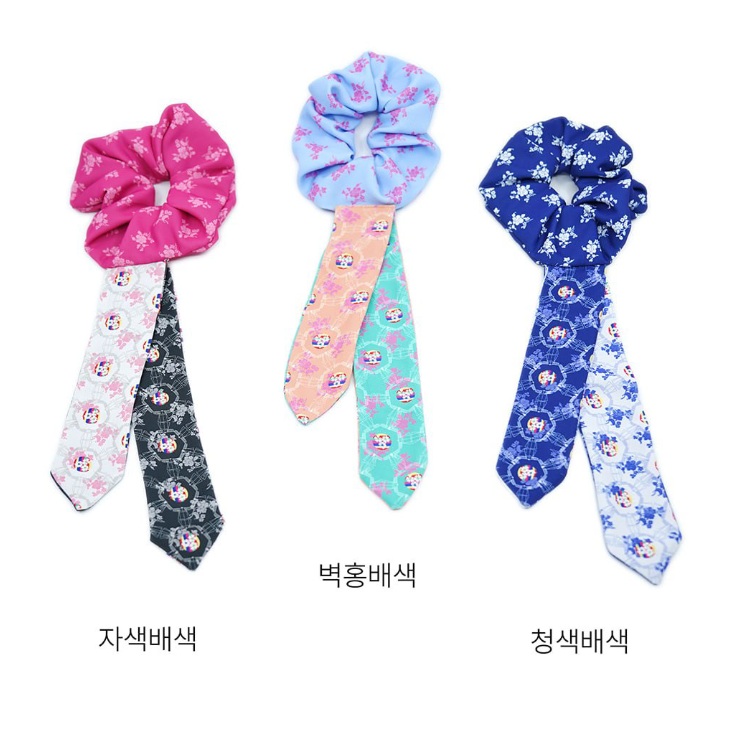 대표적인 아이템으로는 댕기 스크런치가 있습니다. 일반 스크런치와 달리 댕기처럼 꼬리가 길게 늘어지는 디자인이라 머리를 묶었을 때 포인트가 살아나고, 자연스럽게 내려오는 실루엣이 매력으로 꼽힙니다.